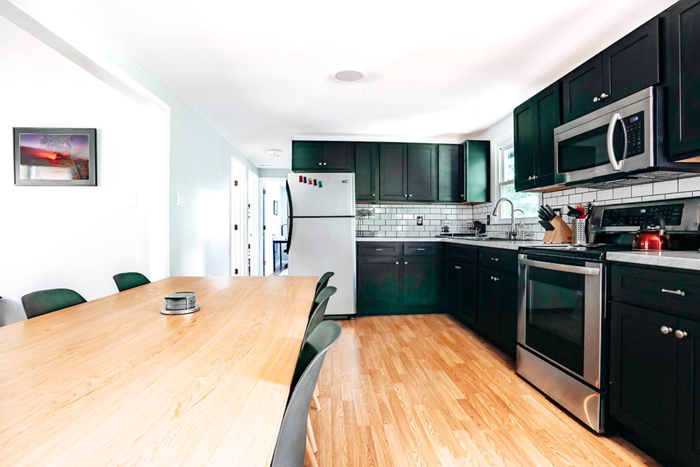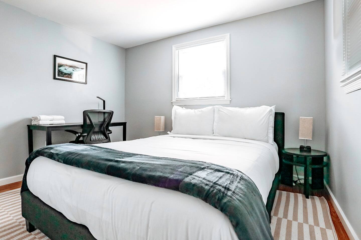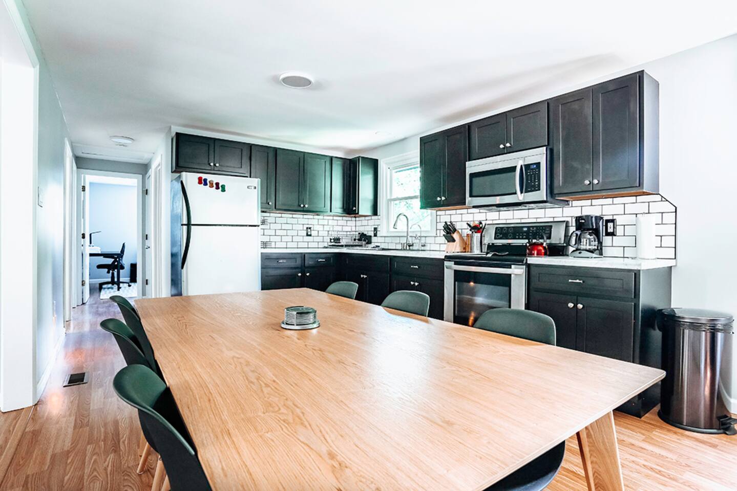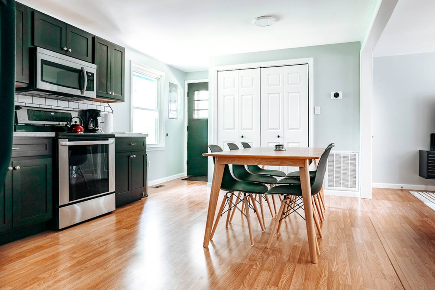 This space was fully renovated in Spring 2021, it is freshly remodeled and ready to host you. It offers a fully, equipped brand new kitchen with everything you need to craft a meal. Unwind in the evenings with a board game, or set up shop in front of the 65" smart tv with surround sound. This home is sure to please. The house is well-equipped with fresh towels, bed linens, hair dryer, refrigerator, microwave, stove, toaster oven, dishes, blender, coffee pot, utensils, pots, and pans. This property does not have a dishwasher. Bedroom 1 Queen bed Bedroom 2 Queen bed + bunk beds Bedroom 3 Queen bed Bathroom Tub/shower combination with glass shower doors