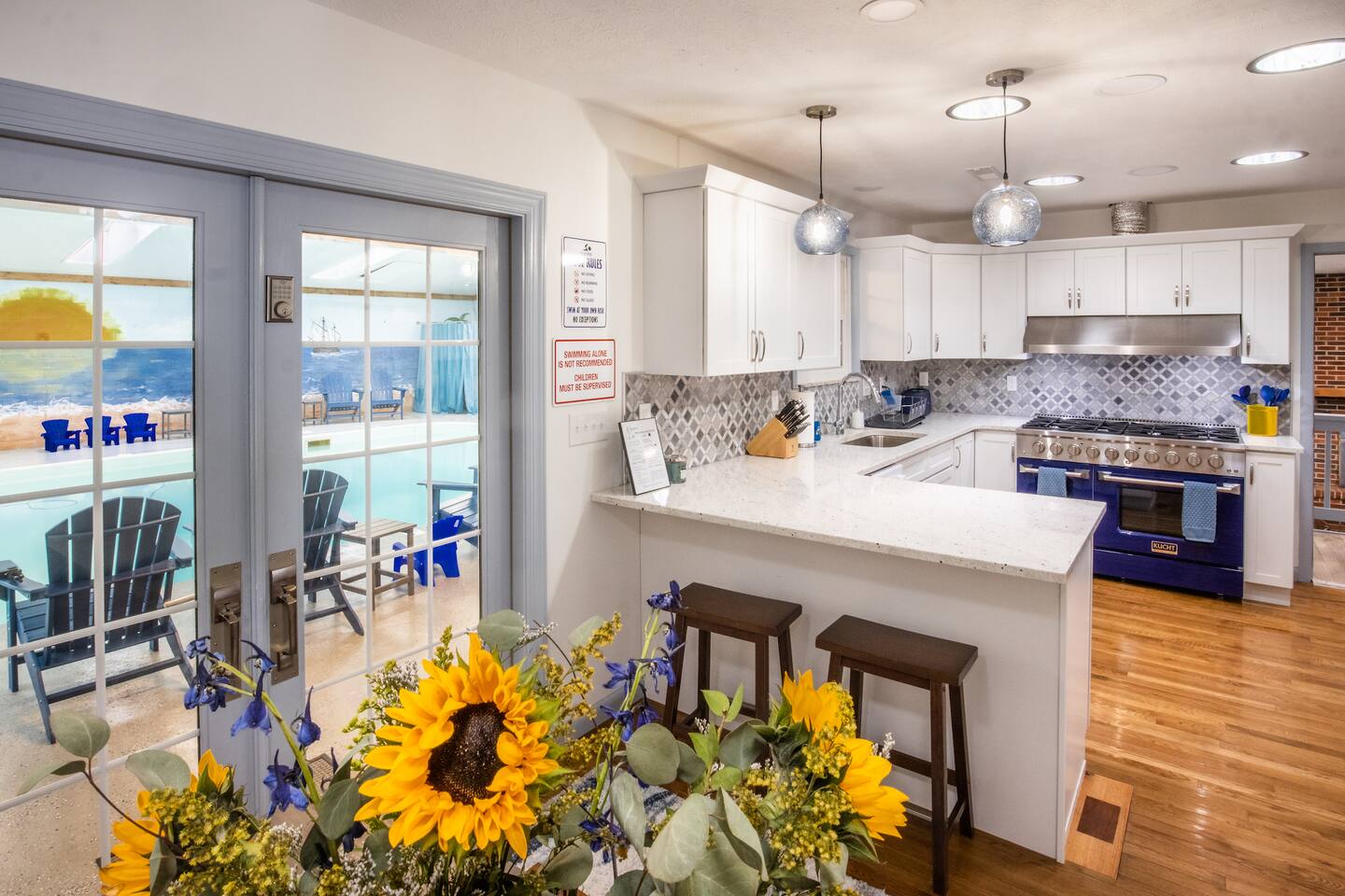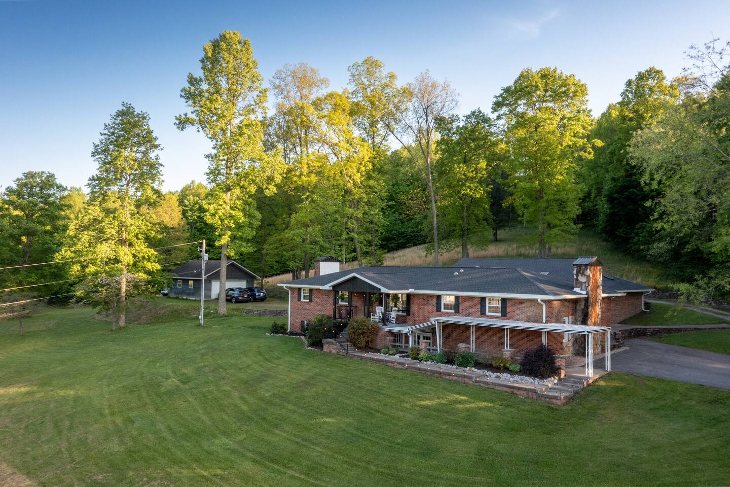 Bring friends, family, and swimsuits to this spacious home that is only a 10-minute drive to Fayetteville, WV - the heart of the New River Gorge National Park. The house has a 30,000-gallon, 20' x 40', indoor, heated saltwater pool. With two living areas, each with an 86" TV and very comfy couches, the entertainment opportunities are endless! The kitchen is fully stocked with cooking supplies and a beautiful 48" Kucht oven.