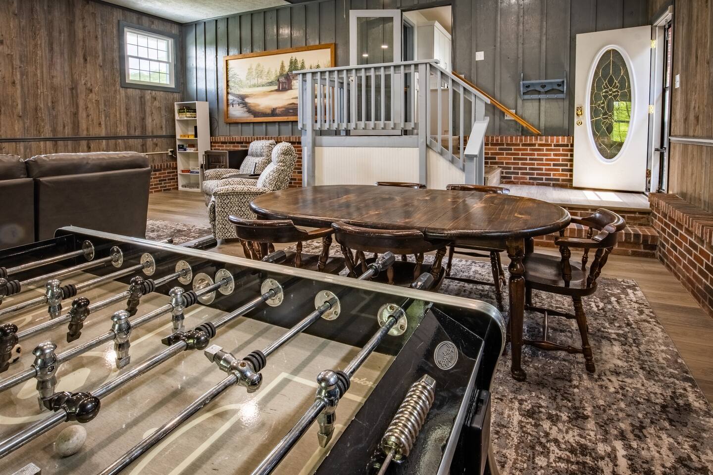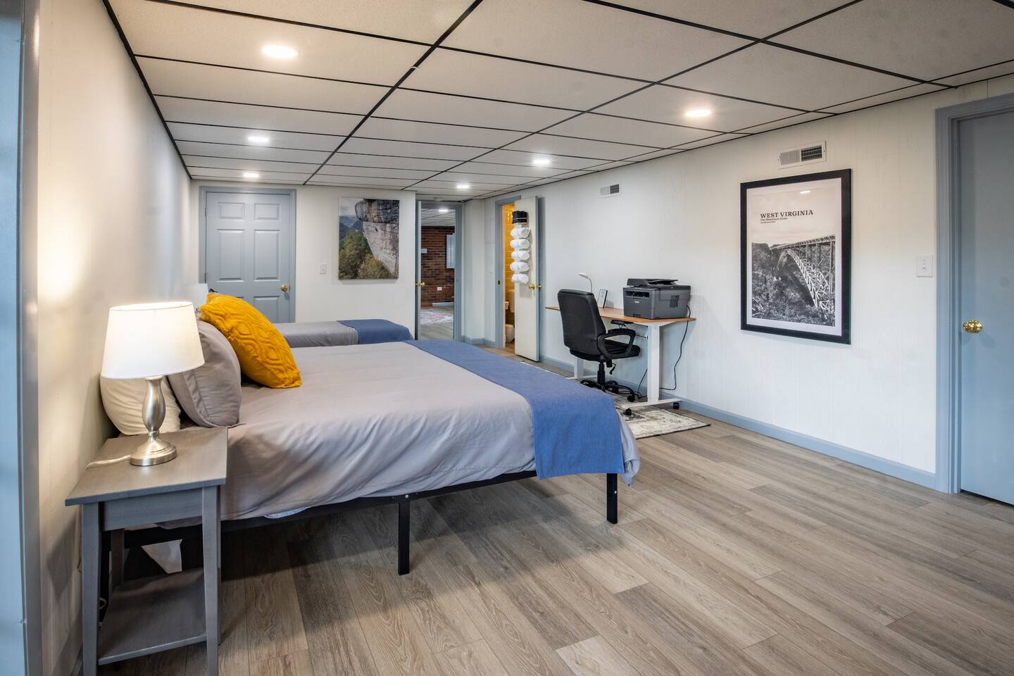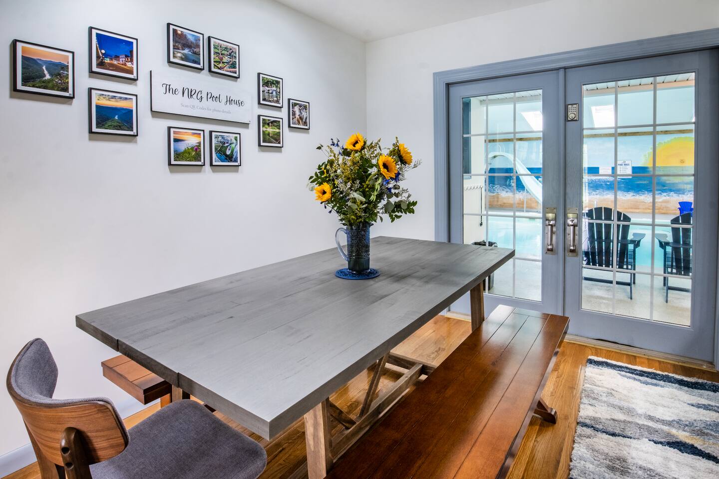 The pool is so fun! It is the perfect place to spend quality time with your group after adventures in the New River Gorge National Park. The house is newly remodeled and there are plenty of beds for a large group. There are five bedrooms: two with king beds, a bunk room with three twins and one full bed, a downstairs bedroom with a king and a twin, and another downstairs bedroom with two kings and two twins. There are three full baths.